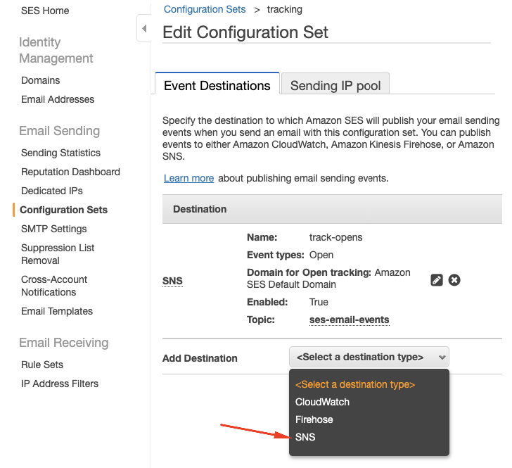 Ses Configset Which to Use Cloudwatch Firehose Sns